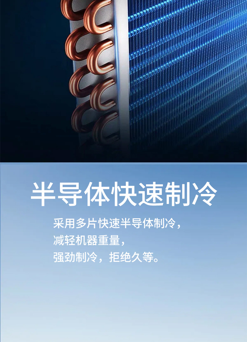 1、采用多片半導(dǎo)體制冷及電控元件,使機(jī)器達(dá)到三級(jí)制冷省電效果;
